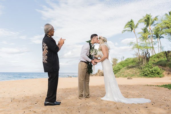 Photographer: Karma Hill Photography//Floral Designer: Dellables Wedding Design & Florals//Officiant: Rev. Kuya//Location:Po’olenalena Beach//Event Planner: Simple Maui Wedding//